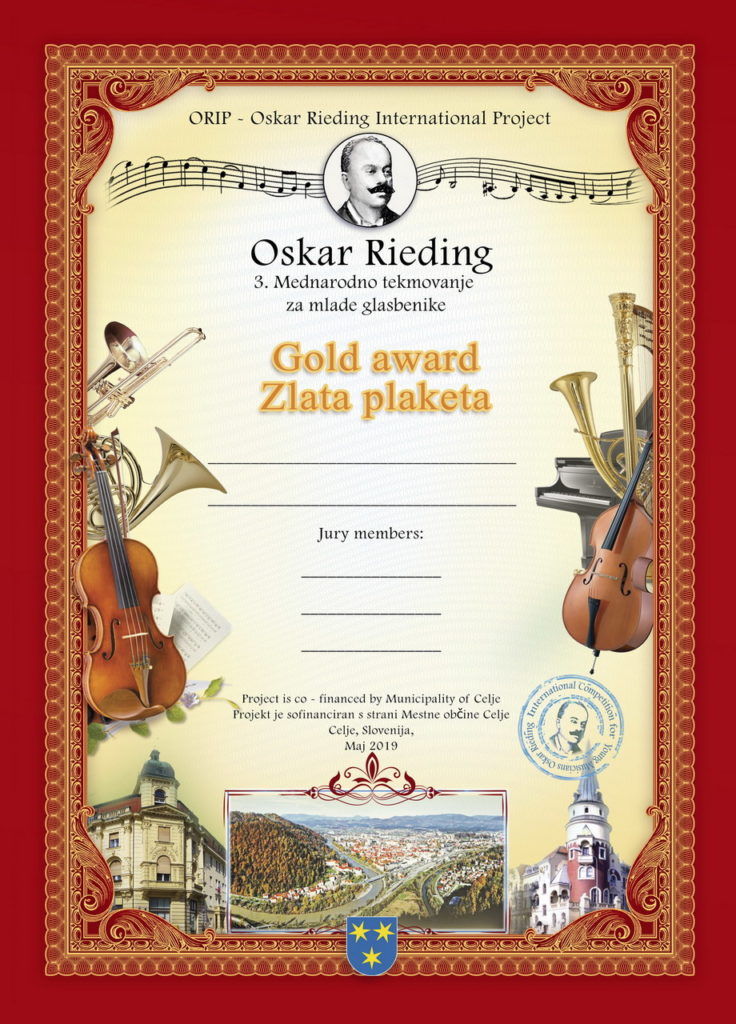 3. Mednarodnega tekmovanja za mlade glasbenike Oskar Rieding v disciplini KOMORNA GLASBA.